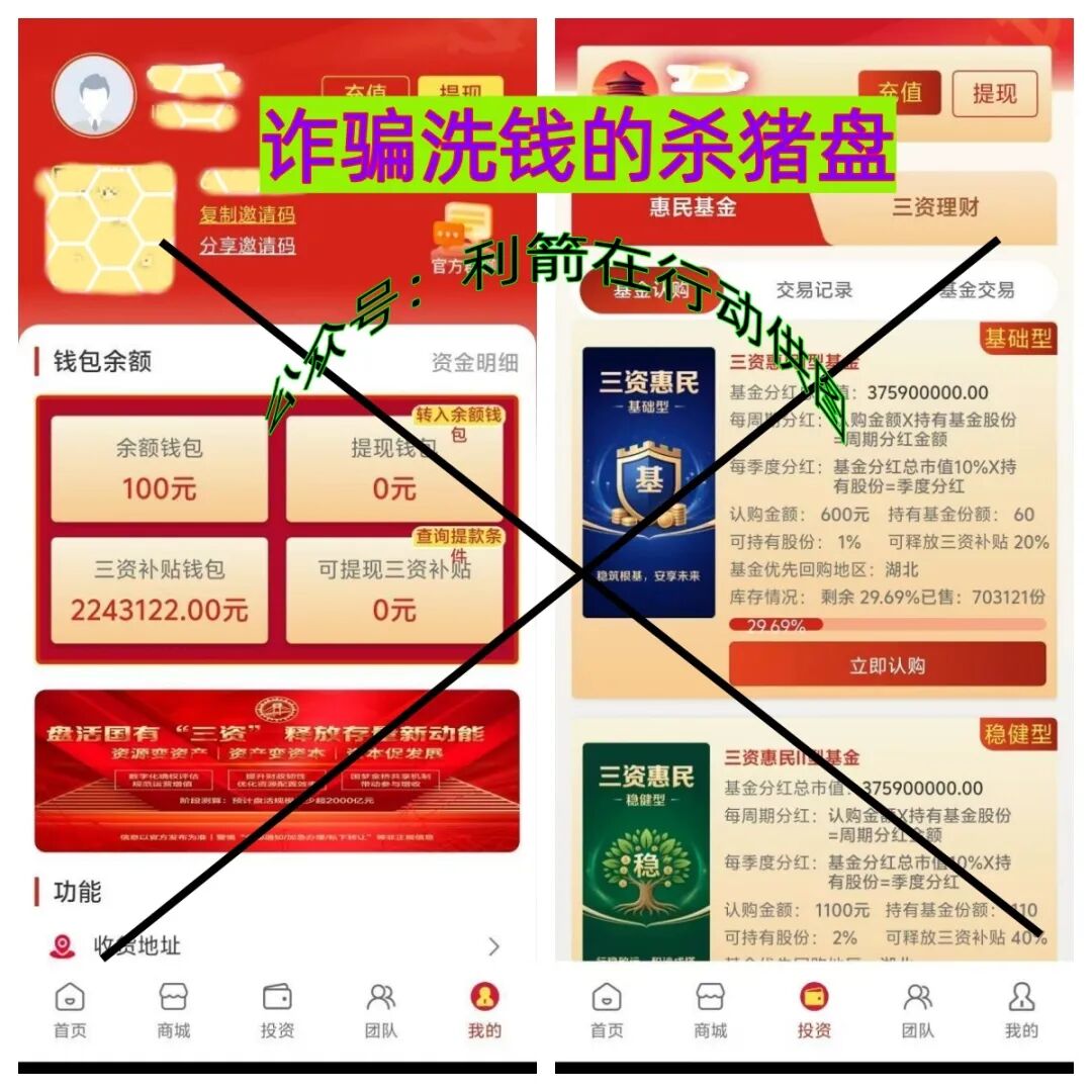 打着“国家项目”旗号,已经上线骗了2个多月的国梦金桥APP,通过来路不明的充值账户收款,虚假的基金产品,从600元到2600元交钱“投资”不等的金额,收益越来越高的特点看出,是让人越陷越深诈骗洗钱的杀猪盘!查到该项目的域名是姓“韦”的个人注册,网站IP地址在美国加利福尼亚州,系非法网站,与宣传是“国家项目”明显不符,请大家提高警惕,别被这个杀猪盘套住了。
