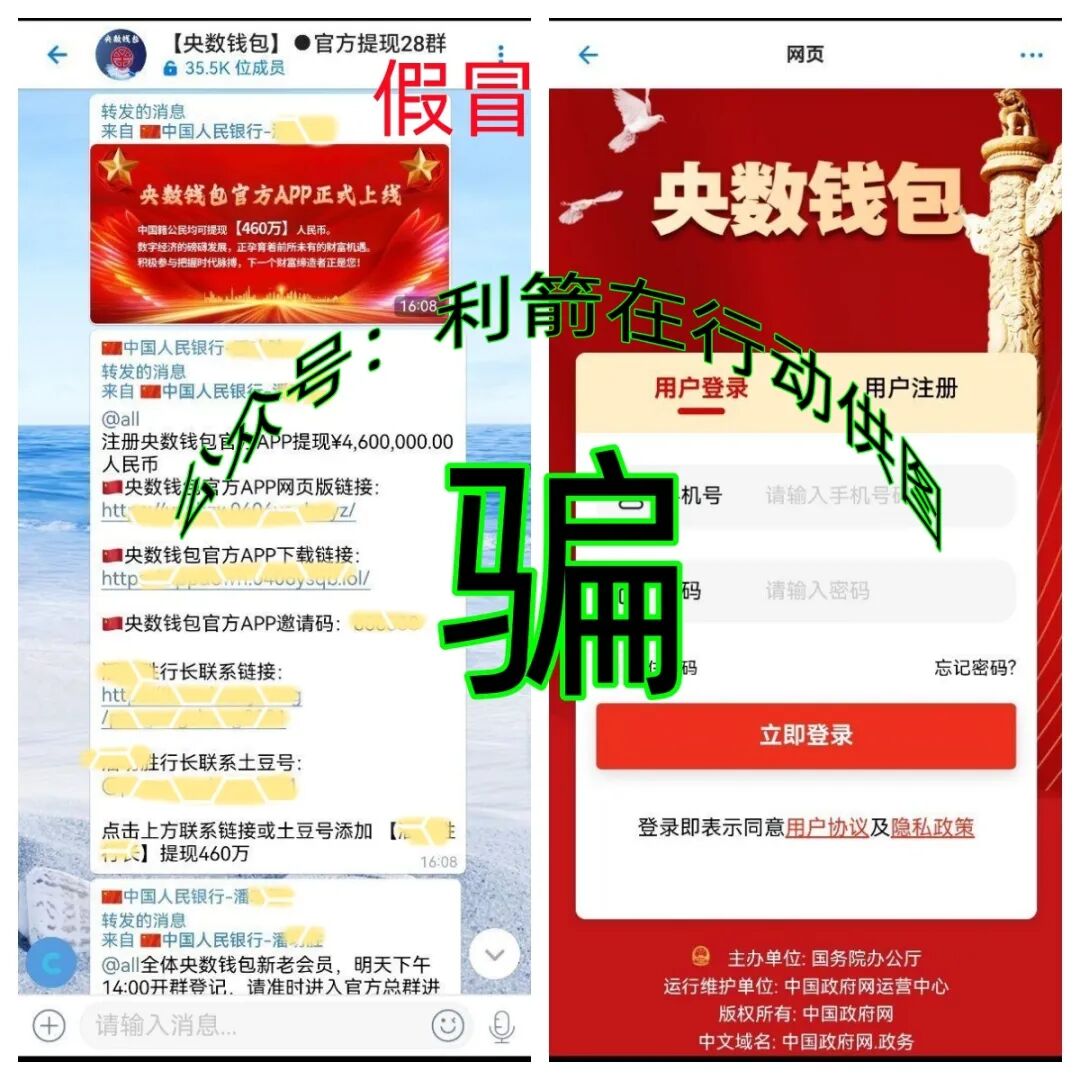 提醒:央数钱包APP是打着“国家项目”旗号的民族资产解冻类诈骗项目,前期利用虚假的高额回报骗取参与者身份信息,后期参与者想领到460万元,就要交各种费用,而460万元,永远不会兑现到账!这是以发钱为“诱饵”,骗取被害人钱财的骗局!