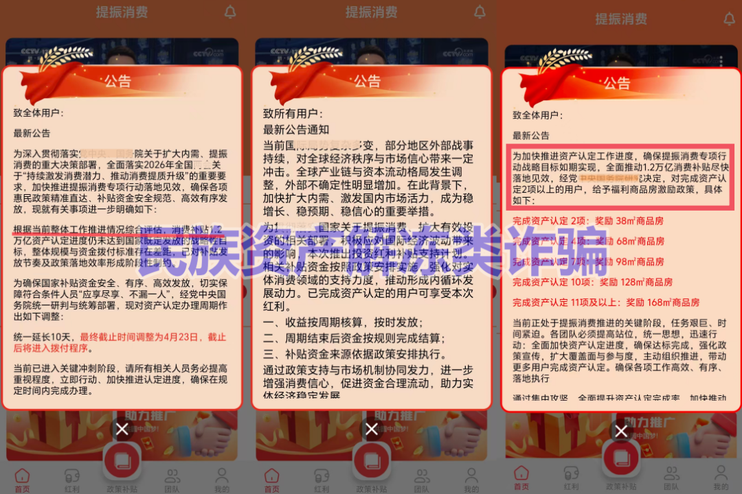 冒充官方某部门的旗号,打着“经济转型”的旗号,制作散布涉诈APP,虚构推广高额返利理财项目实施诈骗。这类冒充官方机构,APP没有进行备案,收款账户为个人的网络理财项目,属于典型的资金盘诈骗。